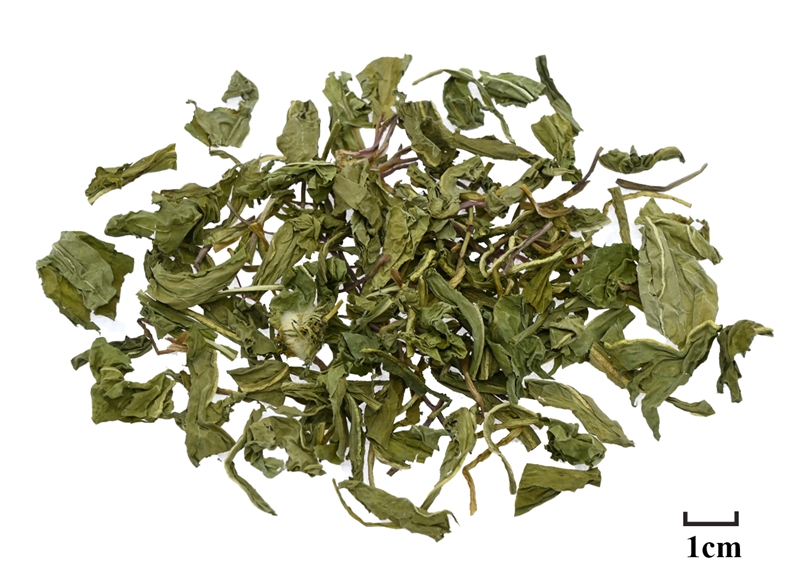 特征:叶绿褐色或暗灰绿色,花冠黄褐色或淡黄白色,气微,味微苦。