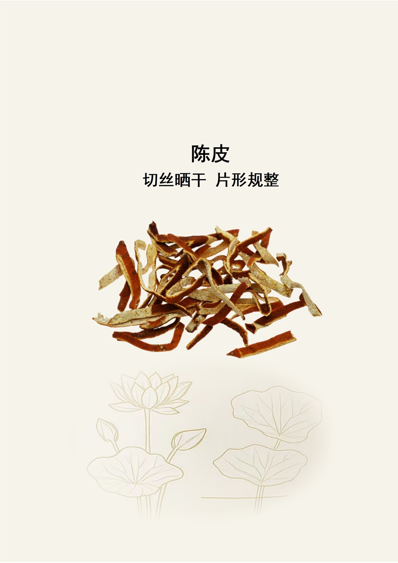 规格:金色荷花精品标准 产地:重庆万州 特征:外表面红棕色,内表面浅黄白色,气香,味辛、苦。 《名医别录》记载陈皮:“生南山,生江南。”《本草经集注》:“以东橘为好,西江亦有而不如。” 《中国药典》2020年版将陈皮药材分为“陈皮”和“广陈皮”,广陈皮的原料是“茶枝柑”;而陈皮主要包括“大红袍”“温州蜜柑”和“福橘”。其中大红袍是道地老品种,大红袍原产于我国,主产于四川,在重庆、江西、湖南也有分布。 重庆万州陈皮(古称“开县陈皮”“朱橘皮”)的药用历史可溯至明代。清乾隆《万县志》载:“州产朱橘,皮红而厚,入药称陈者良”,印证其早期药用作途;同治年间《夔州府志》详述“开县今万州开州区岁贡橘皮百斤”,列为宫廷御药。民国《四川药物调查》称“万县所出橘皮油室饱满,辛香胜他邑”,奠定道地声誉。 万州陈皮的道地性源于三峡库区独特的自然禀赋与百年技艺。