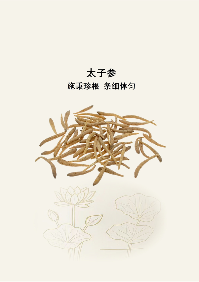 规格:金色荷花精品标准 产地:贵州施秉 特征:表面灰黄色至黄棕色,中心淡黄白色,气微,味微甘。 太子参之名始见于清代《本草从新》。谓:“大补元气,虽甚细如条参,短紧坚实而有芦纹,其力不下大参”。究属何物,不甚明确。赵学敏在《本草纲目拾遗》引《百草镜》云:“太子参即辽参之小者,非别种也,乃苏州参行从参包中拣出短小者名此以售客。味甘苦,功同辽参”。 施秉太子参,是中国国家地理标志产品。施秉是太子参的道地产区,有着数百年的种植历史。施秉县特有的砂质壤土疏松肥沃,加之适宜的气候条件,以及当地药农传承的精湛栽培技术,孕育出的太子参品质卓越。其根条粗壮、质地坚实、色泽黄白、断面平坦,味道甘美,有效成分含量高。 《中华本草》等典籍中,对太子参的优质标准有明确记载,即根条粗壮、质地坚实、色泽黄白、味甘者为佳,施秉太子参完全符合这些标准。
