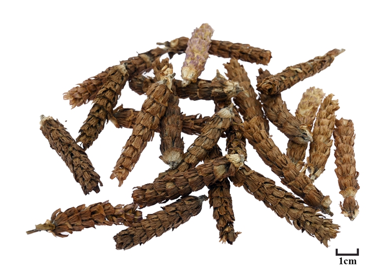 规格:金色荷花精品标准 产地:四川德阳 特征:淡棕色,气微,味淡。 《名医别录》曰:“夏枯草,无毒。一名燕面。生蜀郡(今四川成都一带)。四月采。土瓜为之使。”唐代《新修本草》:“生蜀郡川谷,四月采。土瓜为之使”。《别录》曰:“夏枯草生蜀郡川谷,四月采”。恭曰:“处处有之,生平泽”。 夏枯草生性喜温暖湿润气候,耐寒耐旱,适应性强,适宜生长在疏松肥沃、排水良好的沙壤土或壤土中。德阳属亚热带湿润季风气候,四季分明,雨量充沛,光照充足,尤其在夏季,气温适宜且雨水集中,有利于夏枯草果穗中熊果酸等有效成分的积累。 《中国药典》《中药材商品规格等级》《中药志》《金世元中药材传统鉴别经验》等记载,夏枯草品质均以果穗粗长、色棕红、无杂质、气味浓者为佳,德阳所产夏枯草多符合上述优质标准。