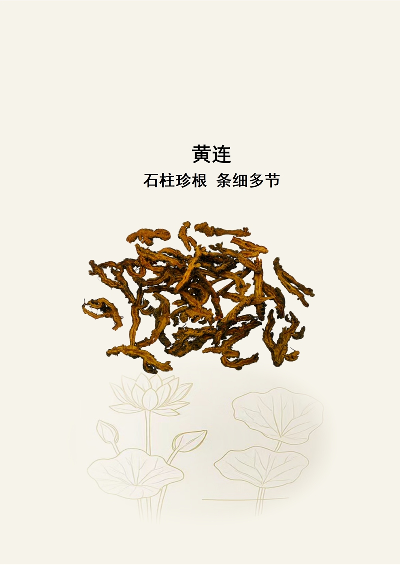 规格:金色荷花精品标准 产地:重庆石柱 特征:外表皮灰黄色或黄褐色;切面红黄色,气微,味极苦。 始载于《范子计然》:“黄连出蜀郡,黄肥坚者善。”南北朝时期,《名医别录》:“生巫阳(今重庆巫山)川谷及蜀郡(今四川),太山之阳”。《中华本草》亦载:“黄连以重庆石柱产者品质上乘”。 石柱黄连,是中国国家地理标志产品。石柱作为黄连的核心道地产区,种植历史可追溯至唐代,至今已有一千多年。 《中国药典》《中药材商品规格等级》《中药志》《金世元中药材传统鉴别经验》等记载,黄连品质均以根茎粗壮、分枝多、色黄、质坚实、味苦者为佳,石柱所产黄连多符合上述优质标准,为业内公认的道地佳品。